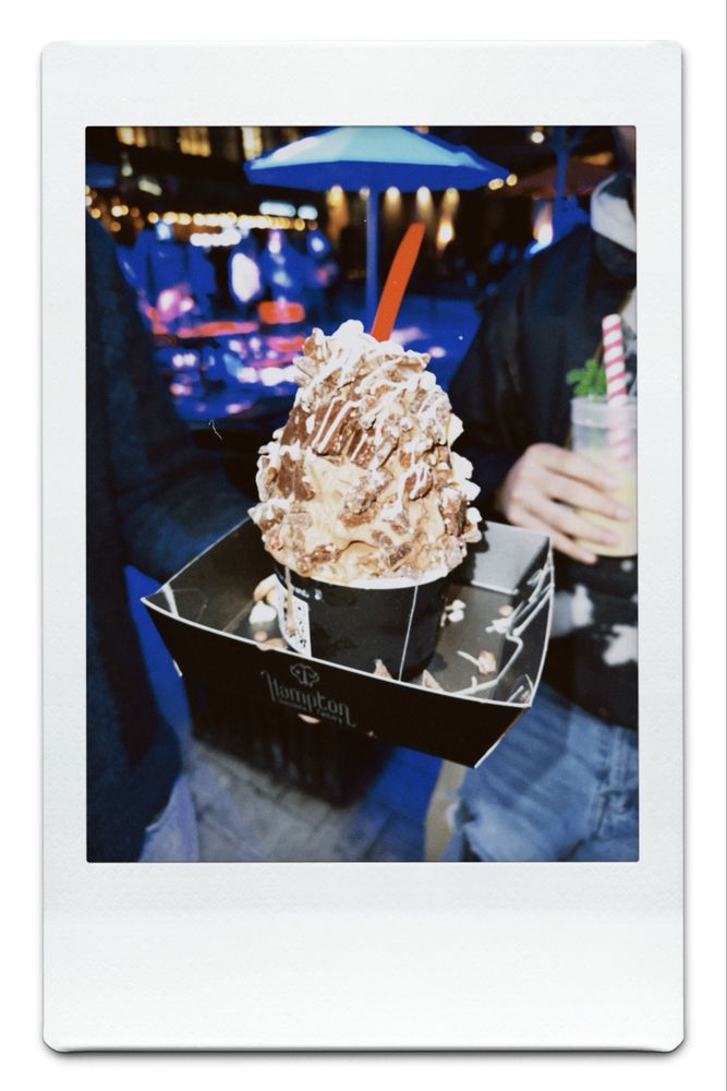 Torched dipped in pure chocolate with vanilla chocolate twist ice cream, crunchy mini marshmallows, crushed graham cracker, marshmallow cream, gourmet chocolate sauce, pure dark chocolate homemade whipped cream